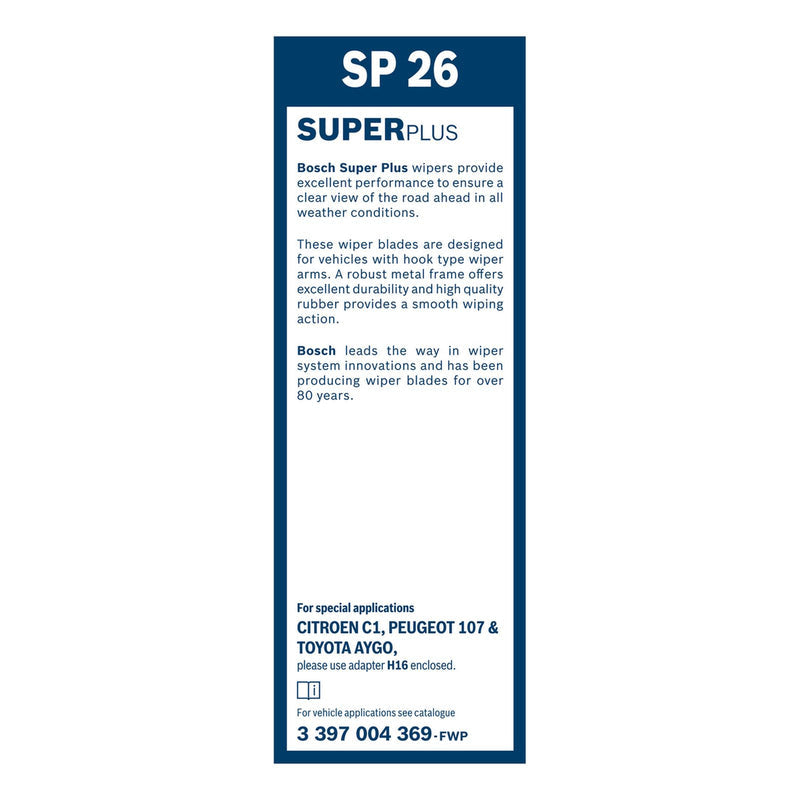 BOSCH WIPER - SUPERPLUS STD BLADE 650 for Peugeot 107 - 1.0 - 05-14 etc