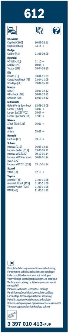 Nissan Navara dCi - 2.3 - 15- / Also Applicable for Toyota(Avensis, RAV 4), Nissan(Navara NP300, X-trail), Renault(Alaskan, Latitude), KIA(Cerato, RIO, Sportage), Hyundai(I10, I20, I20 Active, Ix35, Solaris, Tucson), Mazda(6), Suzuki(Vitara), Mitsubishi(Lancer), Subaru(Impreza), Chevrolet(Captiva, Captiva Sport), Infiniti(QX50), Dodge(Caliber), Opel(Antara)