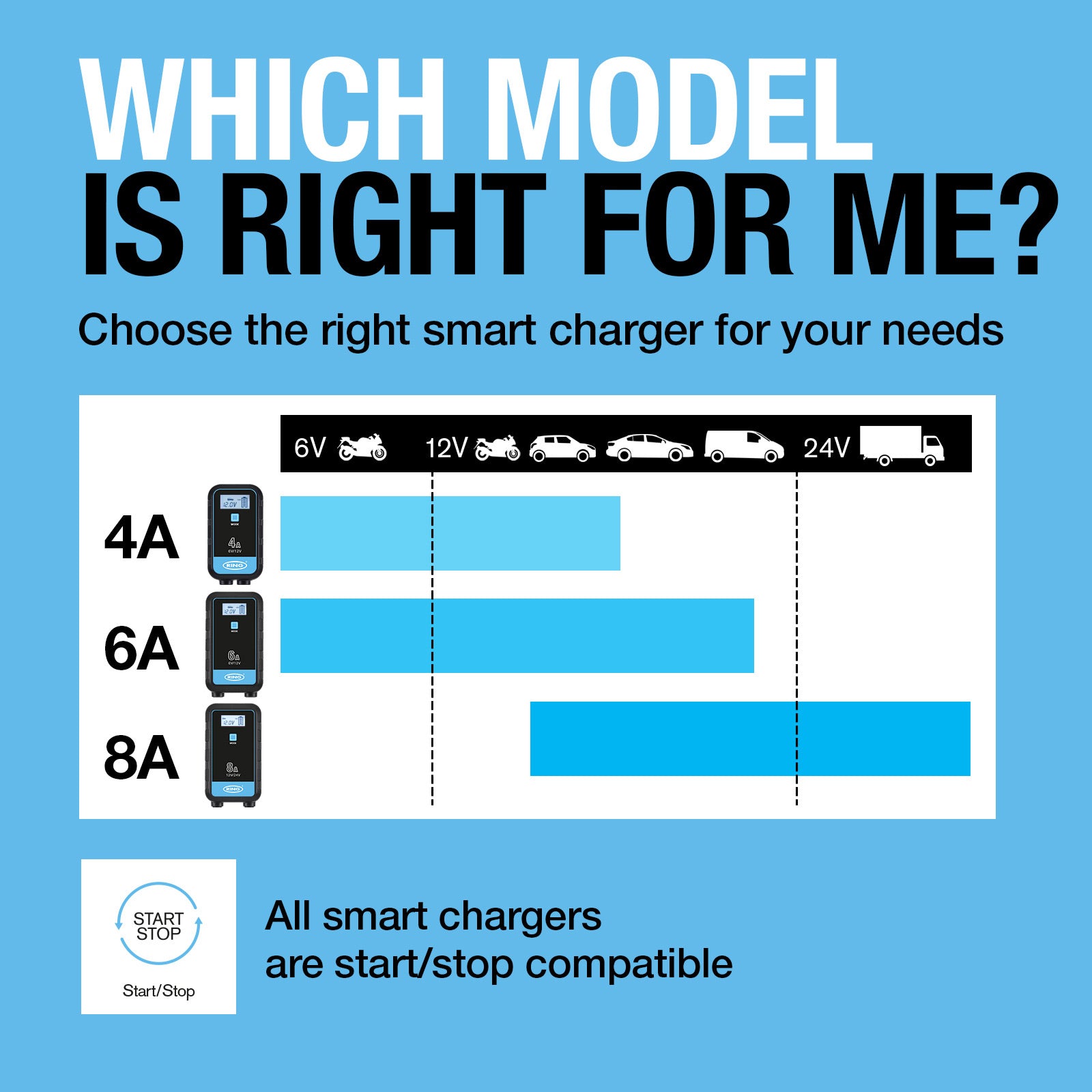 - Compatible with Lithium Ion, Lead Acid, Gel, Calcium, EFB and AGM batteries