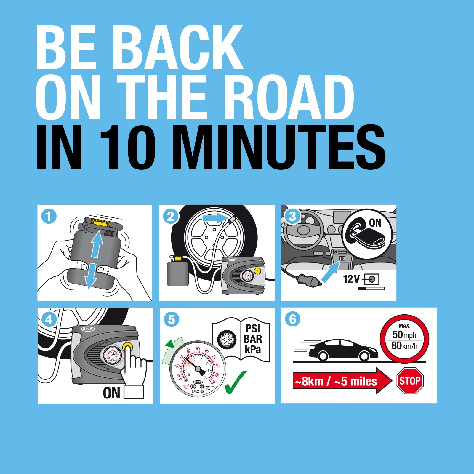 - Quick repair solution allowing you to get back on the road in under 10 minutes