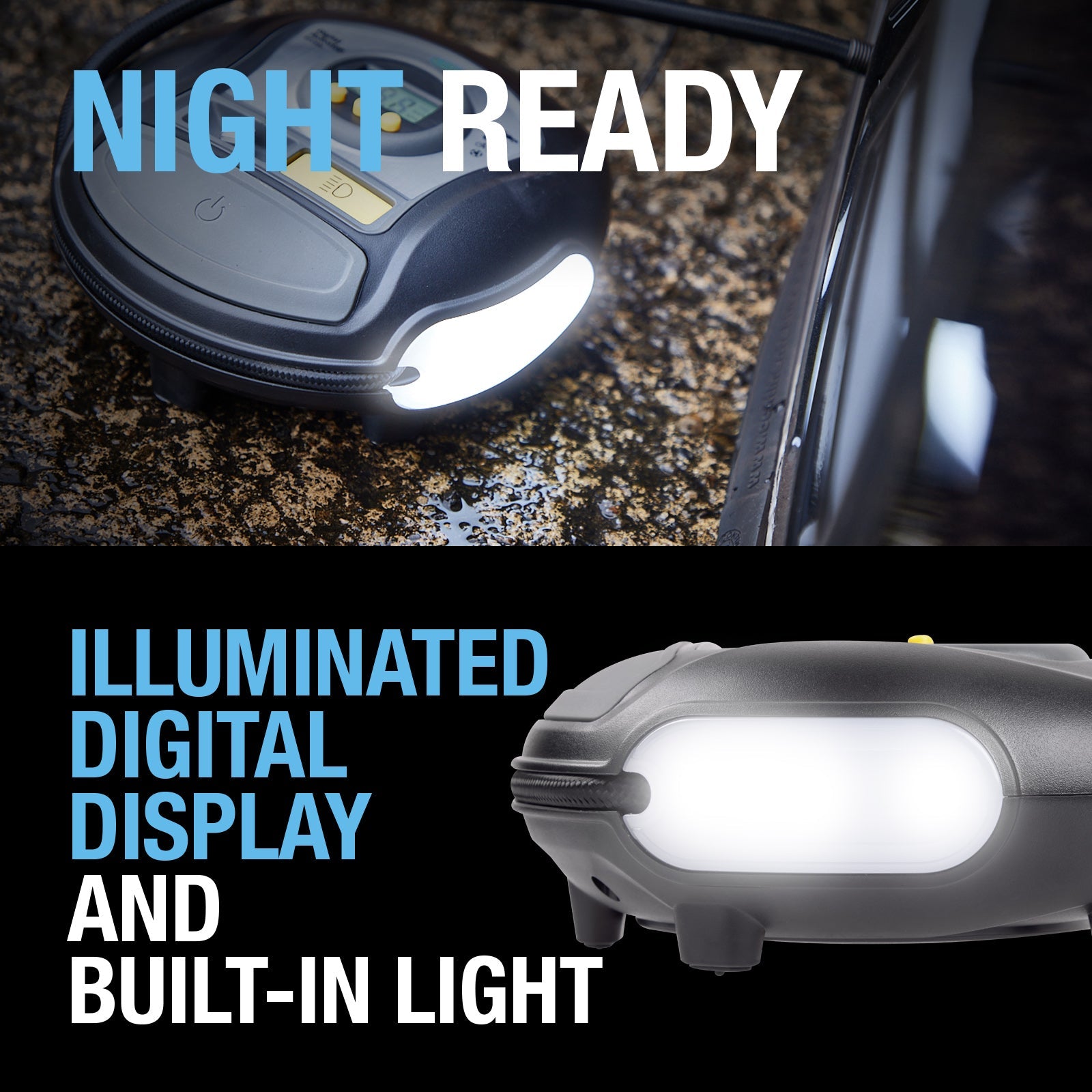 - Clear, back lit digital display makes it easy to read pressure and monitor inflation progress