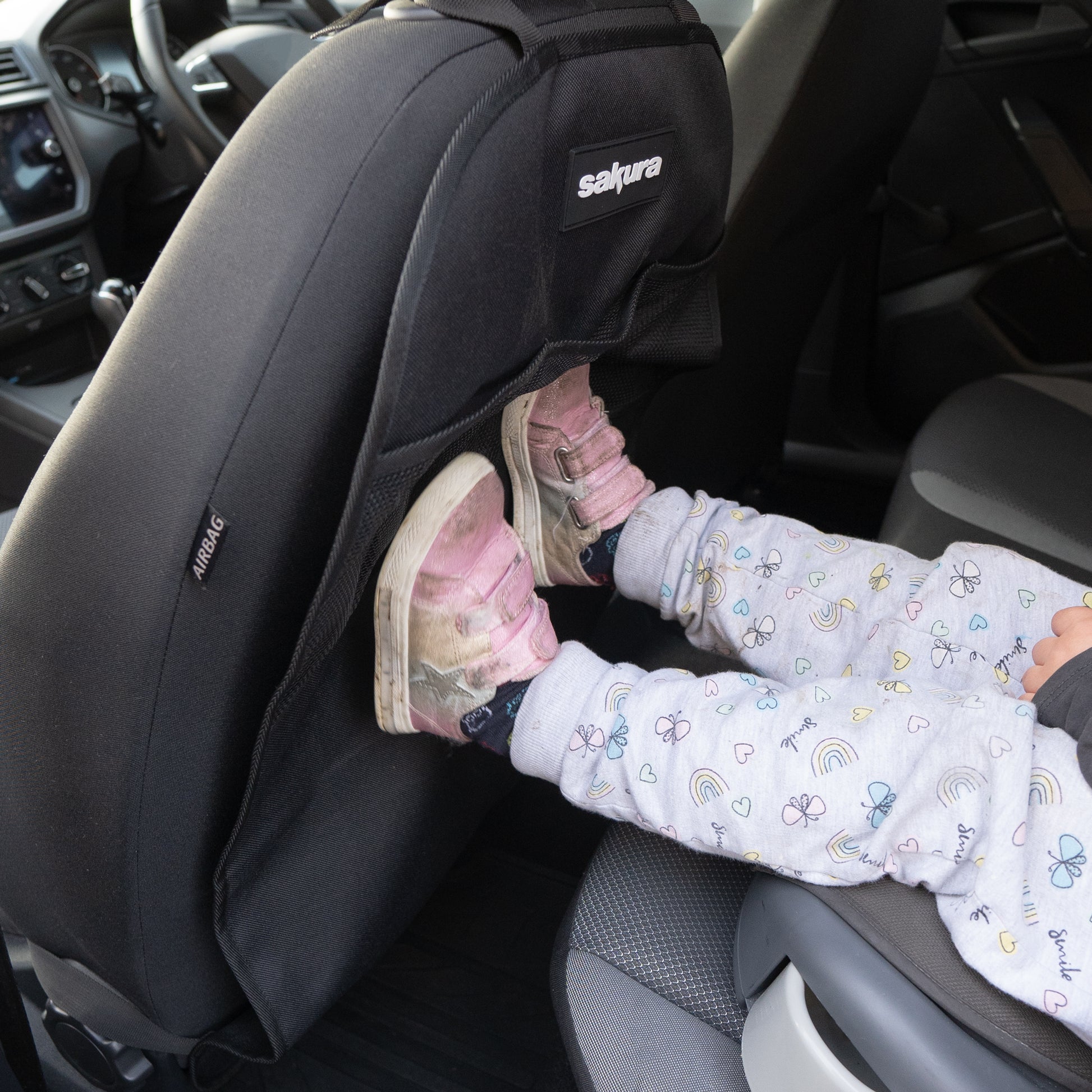 The Sakura Car Seat Protector is an essential item to protect the back of your car seats from muddy feet, stains, and general wear and tear. It’s Large fabric area provides maximum coverage and protection to your vehicle’s interior. This car seat protector is designed for forward-facing children. It’s useful pocket is easily accessible and is perfect for storing anything from toys to snacks. The universal fit with adjustable straps allows it to fit a variety of cars. Installation is both quick and easy, while the fabric can easily be cleaned with a damp cloth. The Sakura Car Seat Protector will keep your vehicle’s interior clean.