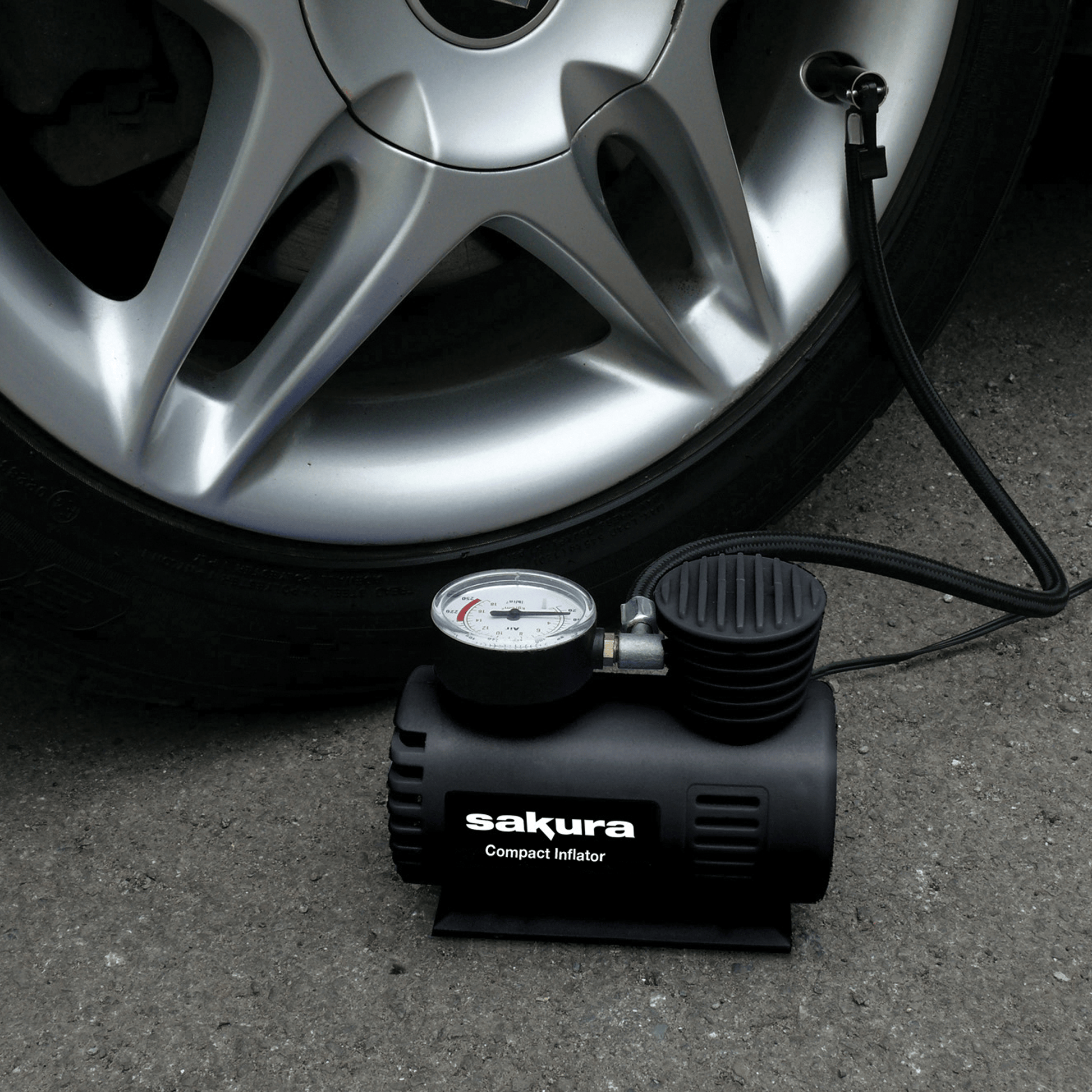The Sakura Compact Inflator will inflate most flat tyres in less than five minutes. It has an easy to read 0-100 PSI gauge to ensure an accurate pressure reading and is compact for easy storage. Pack contains three adaptors suitable for a range of uses including inflatables.