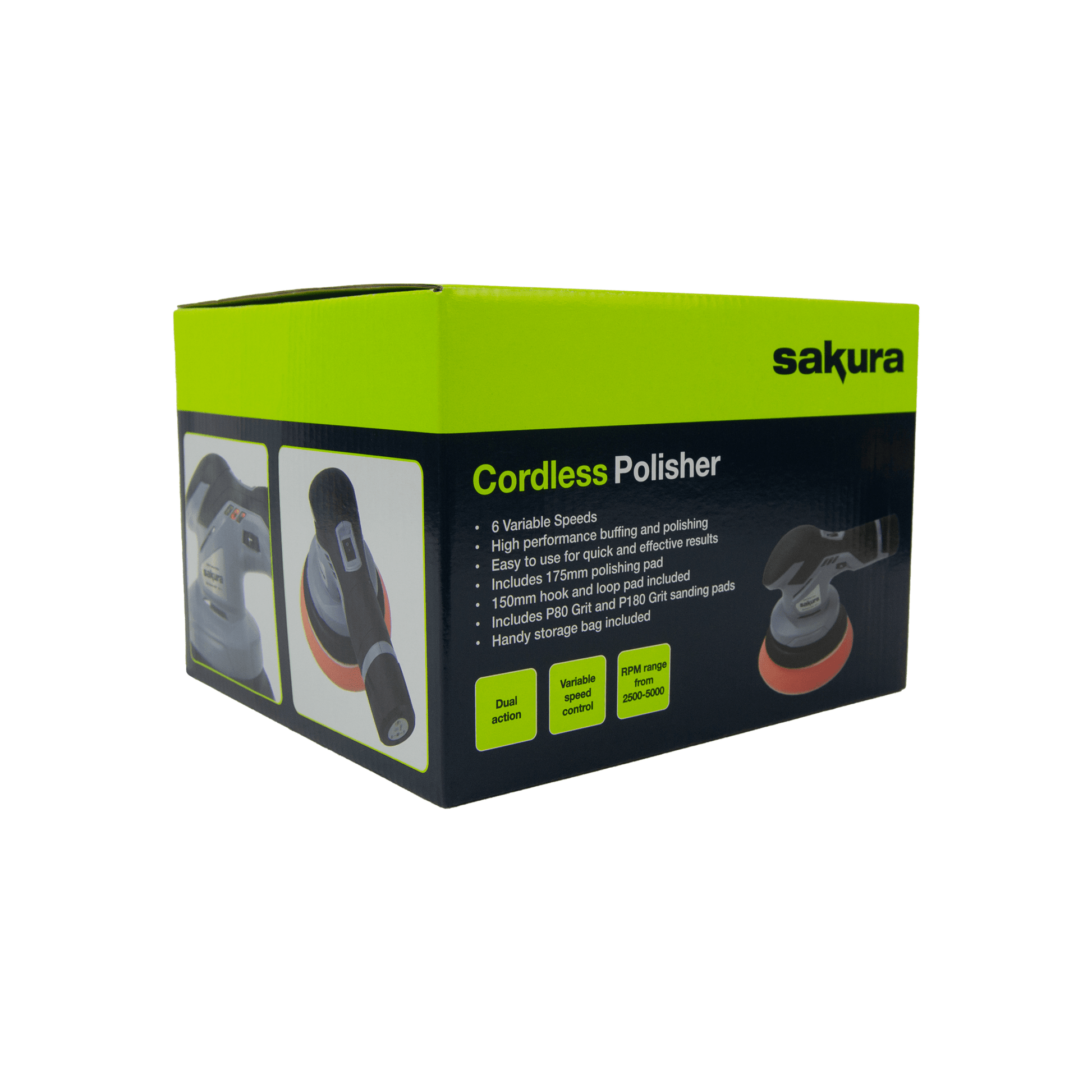 The high-power, slim-designed Sakura Cordless Polisher is a remarkable tool tailored specifically for polishing and buffing bodywork, making it an essential addition to any car enthusiast’s arsenal. With its powerful motor, this polisher delivers impressive performance, allowing users to achieve a professional-quality finish on a variety of surfaces with ease. One of the standout features of this dual-action polisher is its variable speed control, offering optimum versatility for different polishing and buffing tasks.