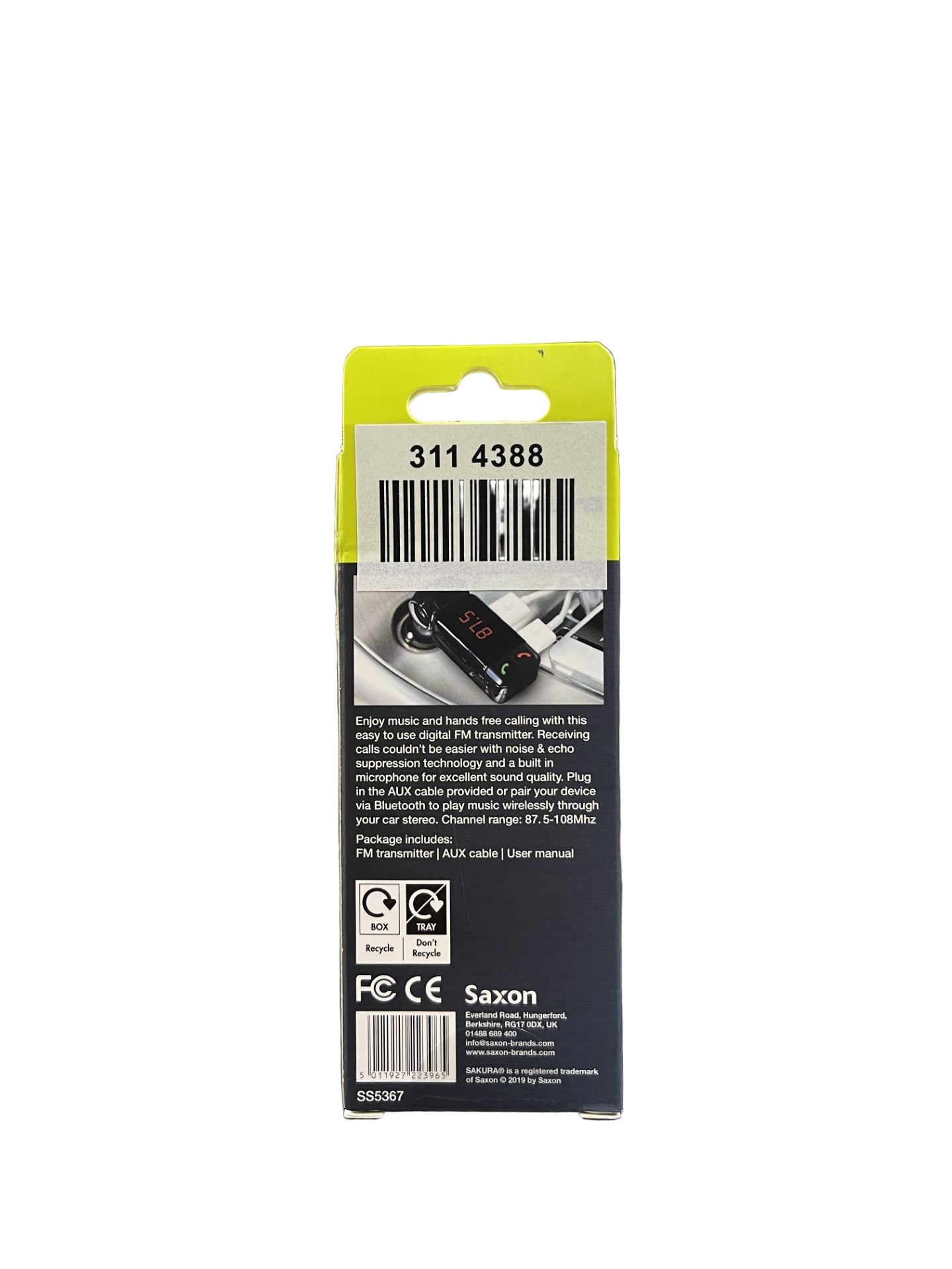 Enjoy wireless connectivity on the road with this easy-to-use Digital Bluetooth Transmitter. Designed to plug directly into your vehicle’s power socket, it connects your smartphone or device via Bluetooth, allowing you to stream music, make hands-free calls, and charge your devices all at once. Featuring clear digital display, multiple connection options, and simple controls, it delivers convenience and safety while driving. Compact and stylish, it’s the perfect upgrade for cars without built-in Bluetooth.