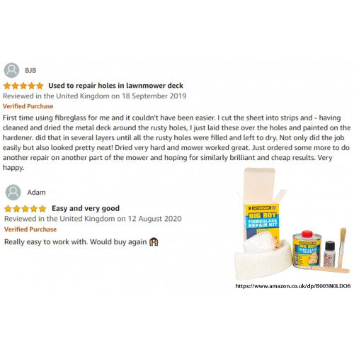 Silverhook Big Boy Glass Fibre Resin Repair Kit is suitable for repair on a variety of materials such as brick, metal, plastic, wood aluminium, glass fibre etc.