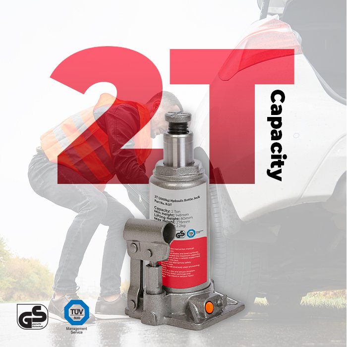 | 2T (2000kg) Hydraulic Bottle Jack | BJ2T | 5056563110125 | H 17 x W 9 x D 11 | 2.2 |