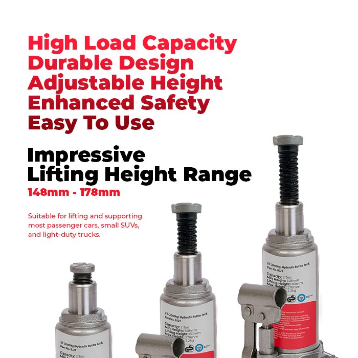Our Hydraulic Bottle Jacks come with built-in safety features such as overload protection and a stable base, reducing the risk of accidents and ensuring the well-being of your workers.