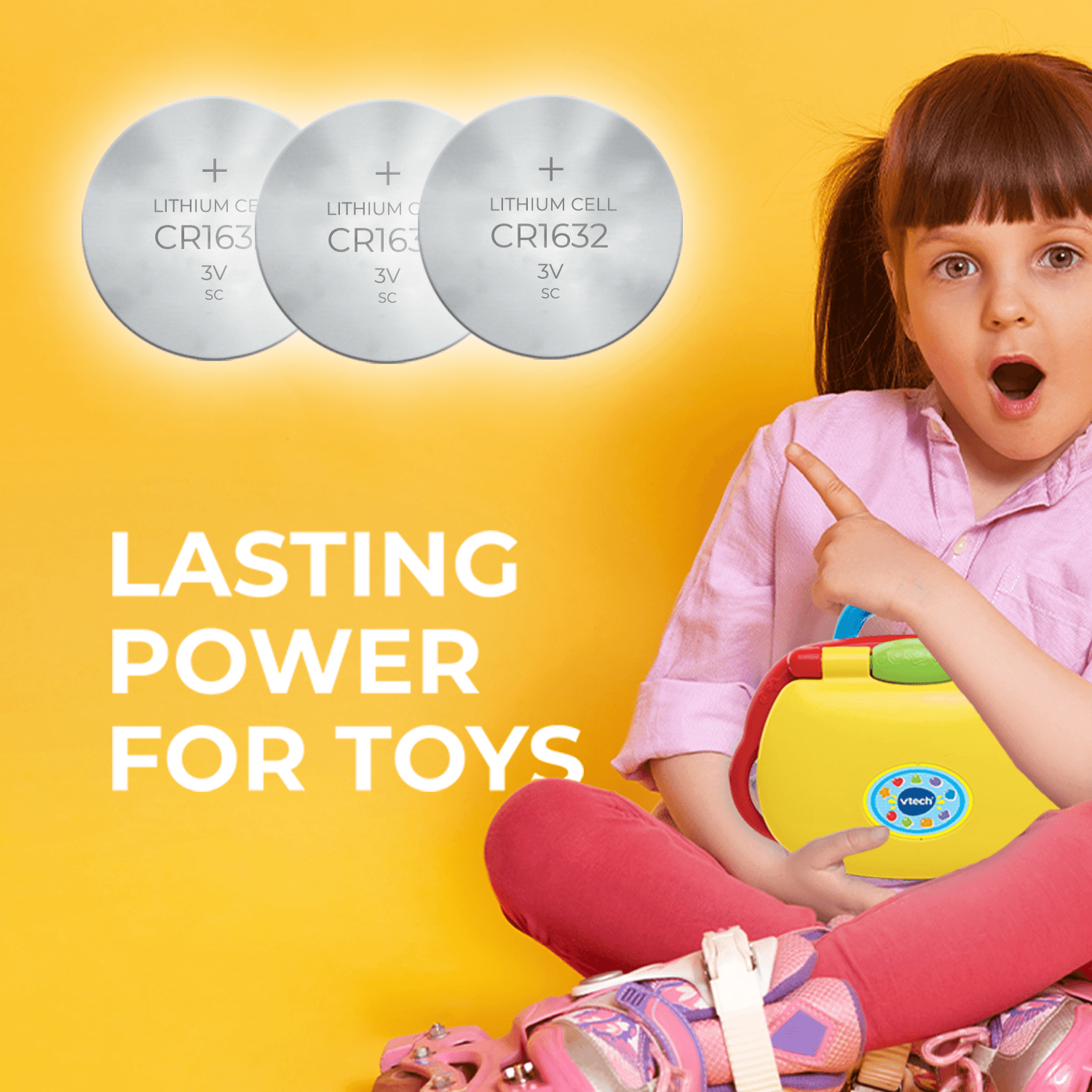 LONG LASTING — our CR1632 Lithium 3V Coin Batteries contain lots of power in an ultra-compact design. Giving you up to 3 times longer use in comparison to more traditional batteries.
