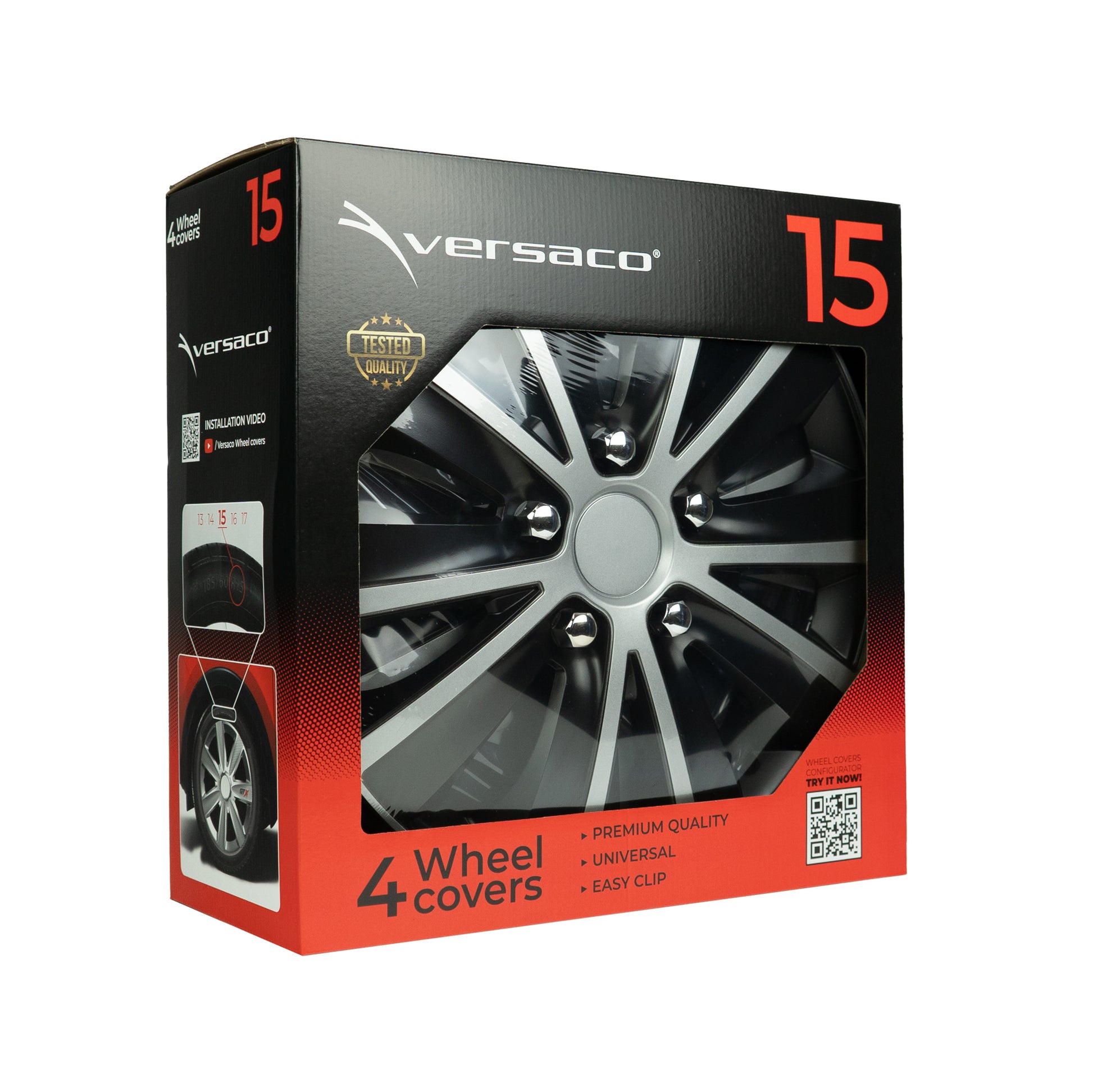 VERSACO RAPIDENC BLACK/SILVER 15″ WHEEL TRIMS - SET OF 4